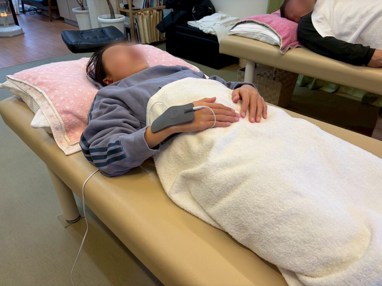 - 非常に微弱な電流(低周波)を使用するため、痛みはほとんどありません。多くの方が「身体の奥がじんわり温かくなる感覚」や「心地よい振動」と感じられ、リラックスして眠ってしまう方もいらっしゃいます。電気の刺激が苦手な方でも安心して受けていただけます。